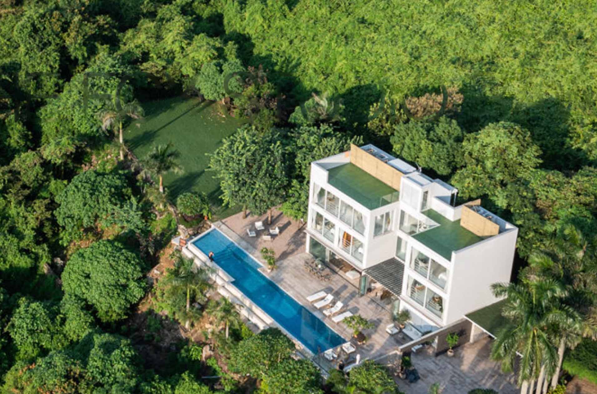 Here is a logotype in styled sans-serif, customized with balanced and extended base strokes to portray the villa’s expansiveness, of the spacious outdoors to the panoramic infinite horizon.